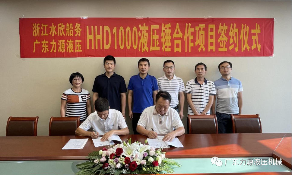 2021年8月19日,广东力源液压机械有限公司与浙江水欣船务有限公司在宁波举行了HHD1000高性能液压打桩锤签约仪式。也是双方继HHP50液压打桩锤成功合作后的再次携手。 签约仪式现场,浙江水欣集团兼浙江水欣船务有限公司董事长蒋文龙与广东力源液压机械有限公司总经理庞国达代表双方签约,浙江水欣集团投资部经理何璐、财务部经理汪洪涛、浙江水欣船务有限公司总经理严志伟、副总经理杨亭柳及广东力源液压机械有限公司庞炬东、财务总监谢国姣等各位领导共同见证了这一历史时刻。