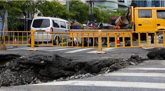 “我们会使用不开挖的情况下用牵引管进行修复,预计半个月完成整个路面恢复。”他说。