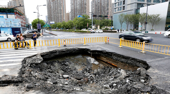 杭州:钱江新城路面塌陷 预计修复需要半个月