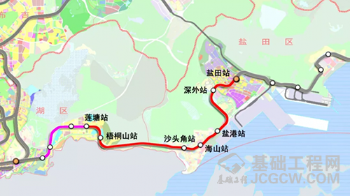 地铁8号线一期工程由2号线三期工程莲塘站站后接出,终点设于盐田港后方陆域的盐田路站,线路长约12.367公里,共设站6座(梧桐山南站、沙头角站、海山站、盐田港西站、深外高中站、盐田路站),均采用地下敷设。