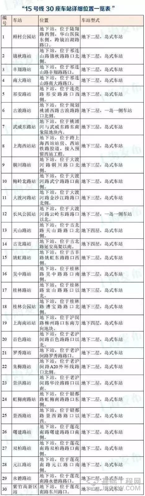 轨交15号线还将与多条线路实现换乘,顾村公园站(与7号线换乘)、上海西站站(与11号线换乘)、铜川路站(未来与14号线换乘)、大渡河路站(与13号线换乘)、桂林路站(与9号线换乘)、桂林公园站(与12号线换乘)、上海南站站(与1、3号线换乘)。