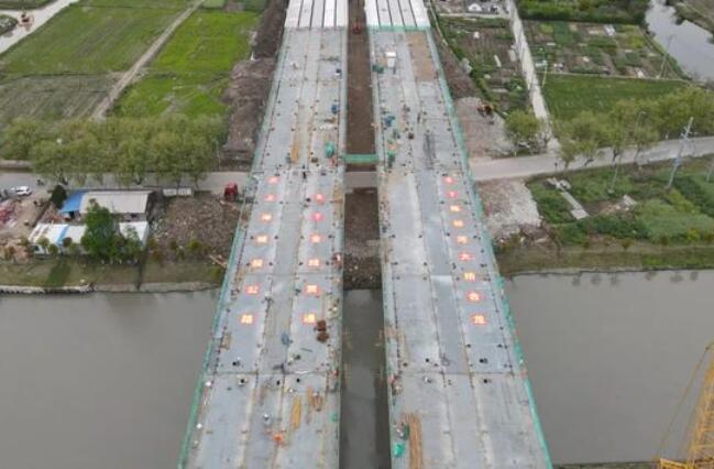 4月14日,作为关键环节的练祁河大桥完成了钢箱梁的吊装,大桥顺利合龙,实现了一标段主体工程贯通和整个二期工程主体工程的全线路贯通,为今年6月底建成通车奠定了坚实的基础。