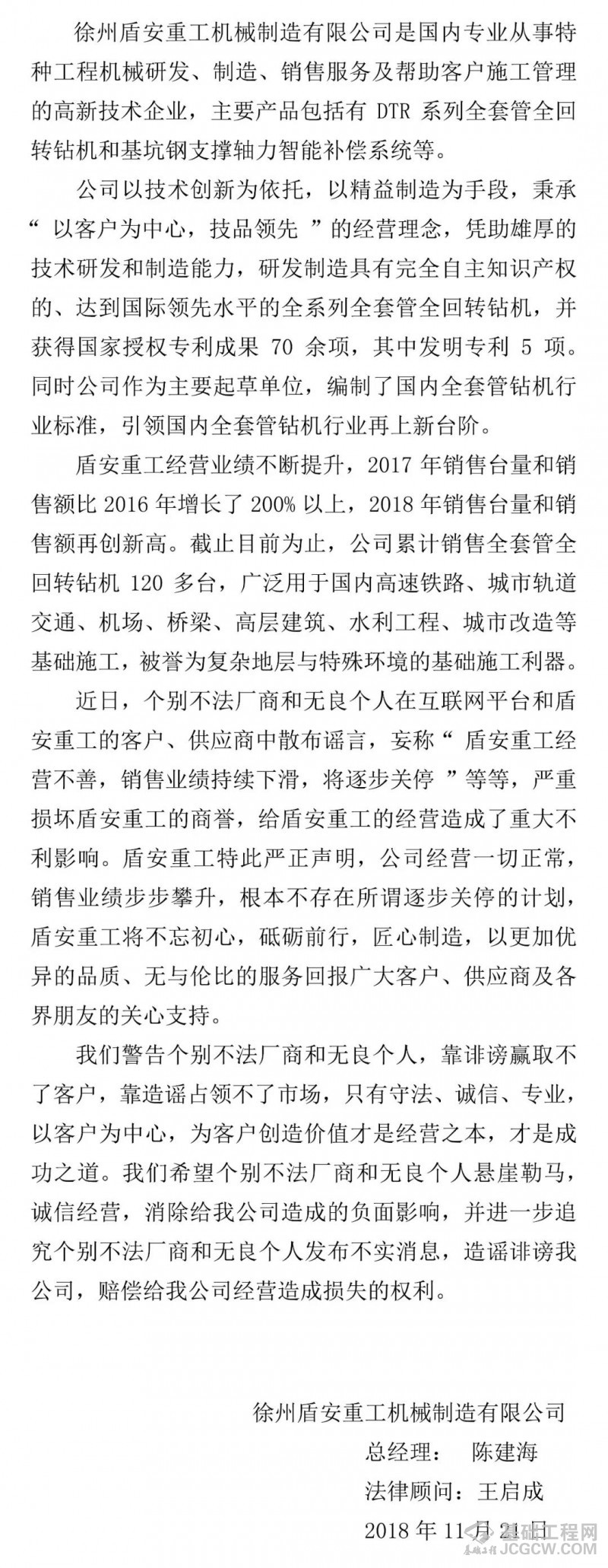 核心提示:严正声明徐州盾安重工机械制造有限公司