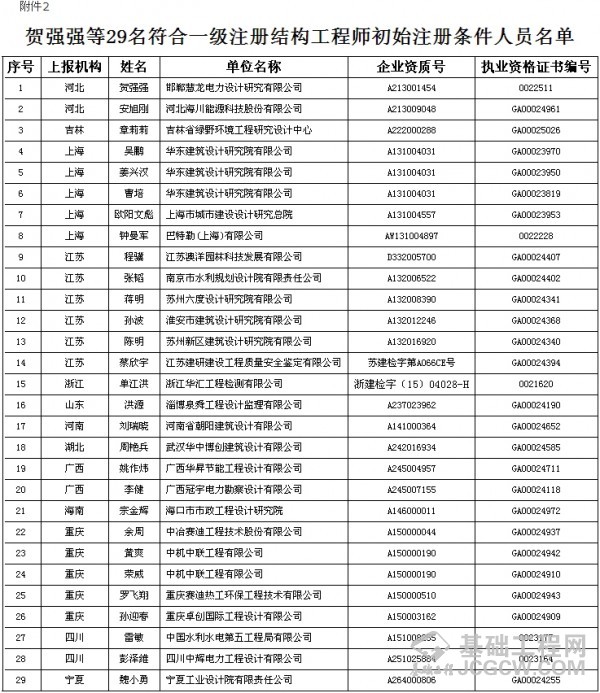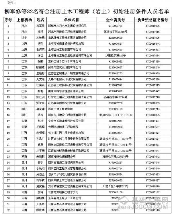 核心提示: 根据《勘察设计注册工程师管理规定》,经审核,柳军修等32人符合注册土木工程师(岩土)初始注册条件(附件1);贺强强等29人