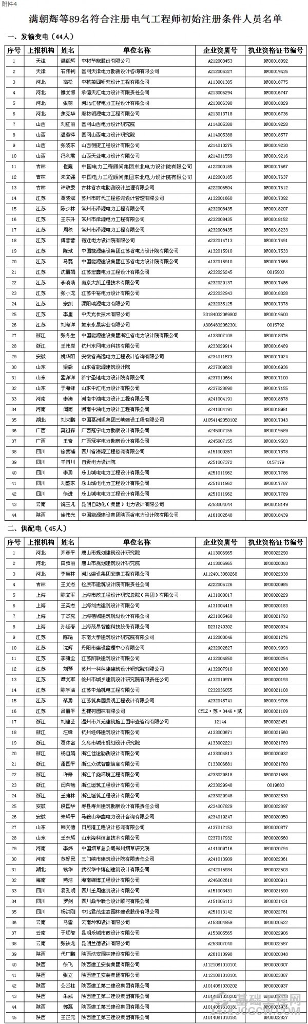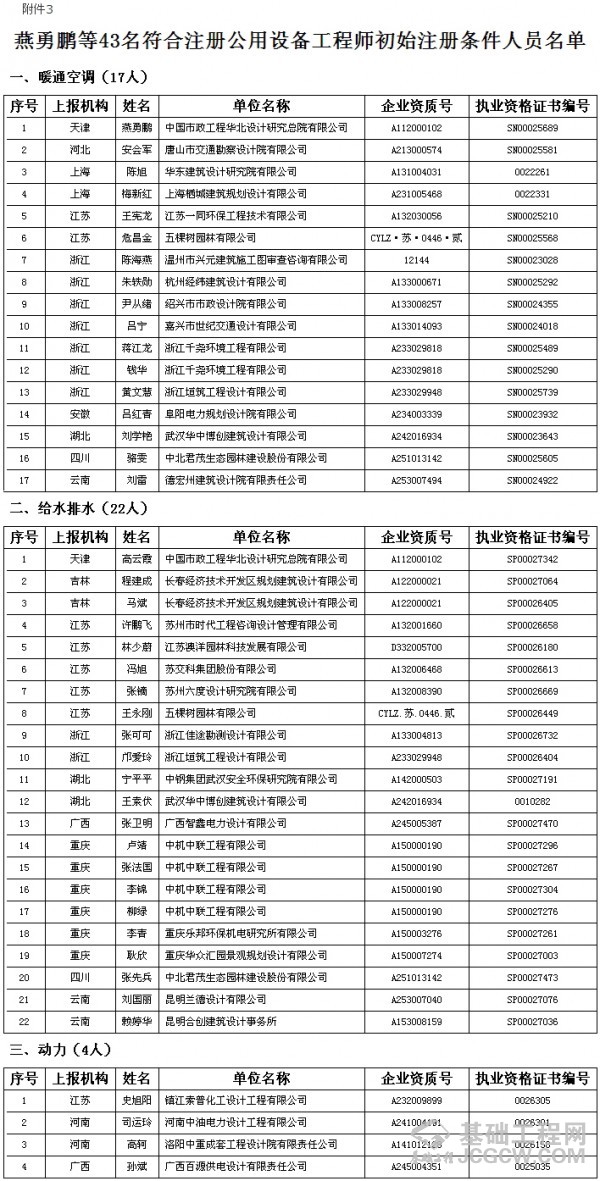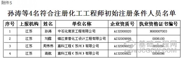 根据《勘察设计注册工程师管理规定》,经审核,柳军修等32人符合注册土木工程师(岩土)初始注册条件(附件1);贺强强等29人符合一级注册结构工程师初始注册条件(附件2);燕勇鹏等43人符合注册公用设备工程师初始注册条件(附件3);满朝辉等89人符合注册电气工程师初始注册条件(附件4);孙涛等4人符合注册化工工程师初始注册条件(附件5),现予以公示。公示截止日期为2016年3月18日。