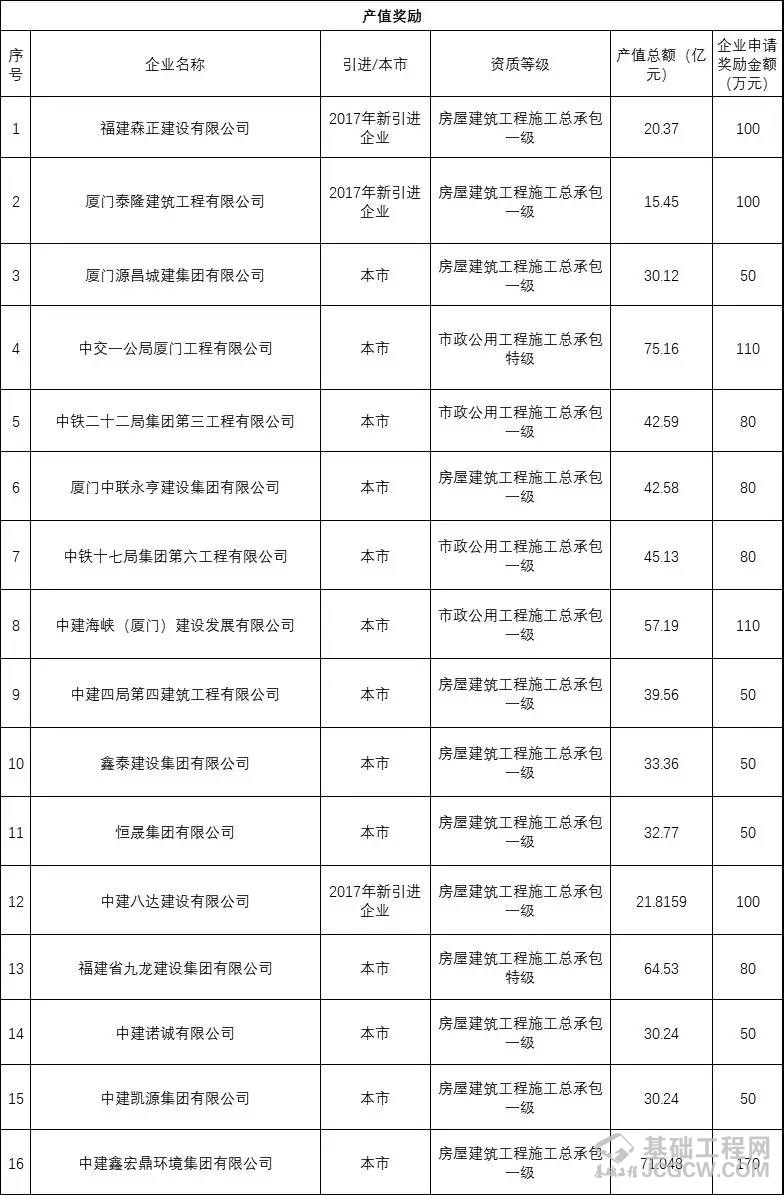 所以各省市在促进本地建筑业发展的相关文件中,不仅会明确提出关于特级企业数量的发展目标,对资质升级企业的“奖补”,而且对于产值较高的建筑企业,也会有“奖补”的政策。